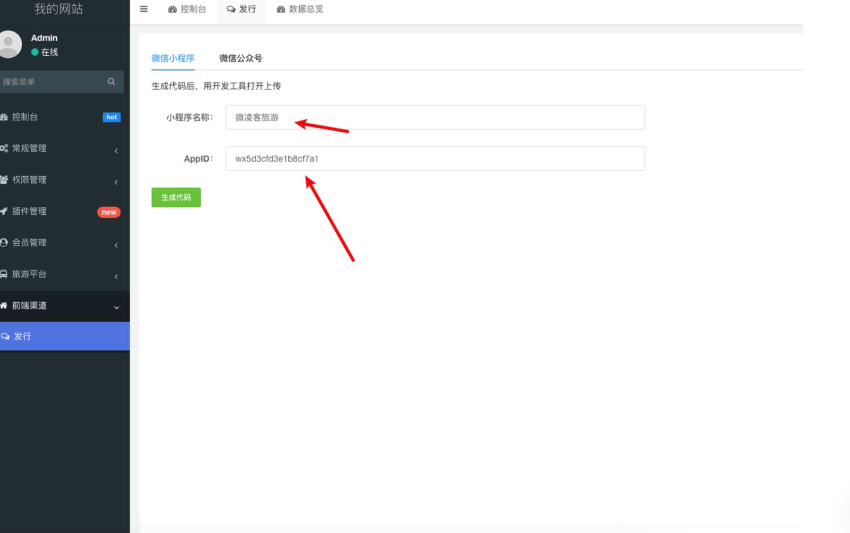 输入小程序名称 及appid 先保存设置再生成代码!!